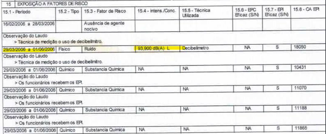 De 07-05-1999 a 18-11-2003 | Anexo IV do Decreto nº 3.048/99, na redação original. | Superior a 90 dB. |