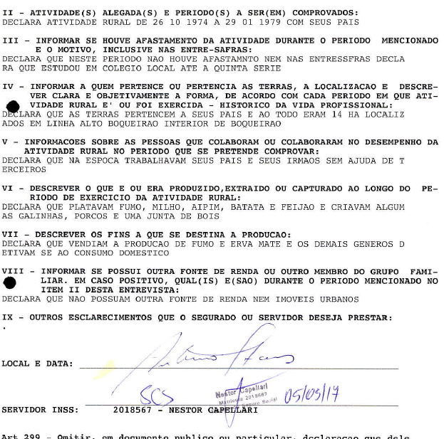- Em nome próprio: - certificado esclar (1971 a 1978); - autodeclaração de labor rural.