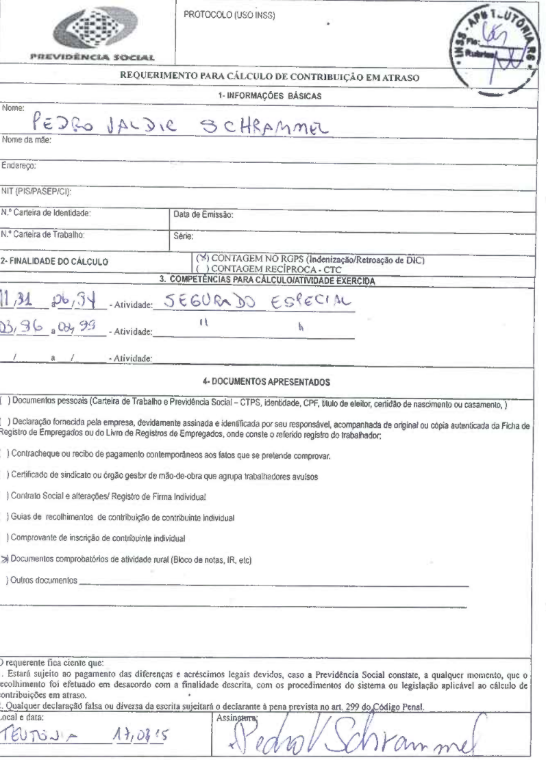 Todavia, compulsando ao processo administrativo juntado aos autos, verifico que a parte autora efetivamente postulou o cálculo das indenizações devidas em relação ao tempo rural postulado ( - p. 103):
