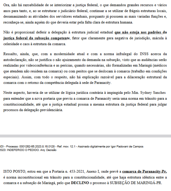 Assim, a inclusão da Comarca Estadual de Paranacity/PR na lista sinaliza que persiste a competência da Justiça Estadual delegada para os processos ajuizados a partir de 1-2020.