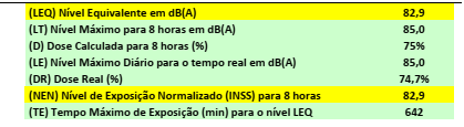 R – Os citados documentos apontam medições pontuais, onde em determinados momentos do dia, tais valores até acontecem, porém, isso não reflete a realidade constante das jornadas de trabalho do autor. Obs.: O correto é apurar a média ponderada (dose) diária, conforme demonstrado no subitem 5.1.3 do laudo pericial.