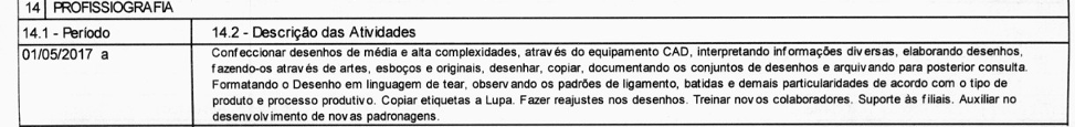 | CONCLUSÃO | As provas listadas acima não demonstram o enquadramento da parte autora por categoria profissional ou a exposição a agentes em patamar nocivo nos termos dos regulamentos da Previdência.