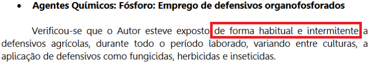 Em tempo, insta referir que, nos termos do código 1.2.6 do Anexo ao Decreto nº 53.831/64, bem como do código 1.2.6 do Anexo I ao Decreto nº 83.080/79, são consideradas insalubres as operações com fósforo e seus compostos, na forma de extração e depuração do fósforo branco e seus compostos, bem como fabricação de produtos fosforados asfixiantes, tóxicos, incendiários ou explosivos, além de fabricação e aplicação de organofosforados, inseticidas, parasiticidas e raticidas, e, ainda, pelo emprego de líquidos, pastas, pós e gases à base de fósforo branco.