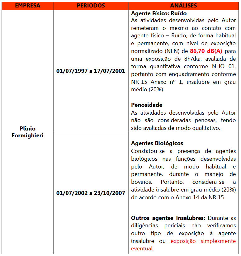 Isso porque o autor estava exposto ao referido agente no manejo e transporte do gado, assim como na limpeza da carreta de transporte, contendo fezes, urina e pelos dos animais, segundo relatado também no PPP emitido pela empresa: