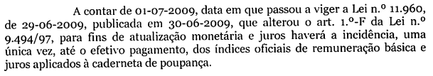 Este entendimento foi adotado porque, no momento do julgamento da fase de conhecimento, não havia definição da matéria no STF, com o que diferiu-se a definição dos critérios de correção monetária a serem aplicados para a fase de execução. A decisão final do STF quanto ao tema (RE 870.947) somente transitou em 03/03/2020.