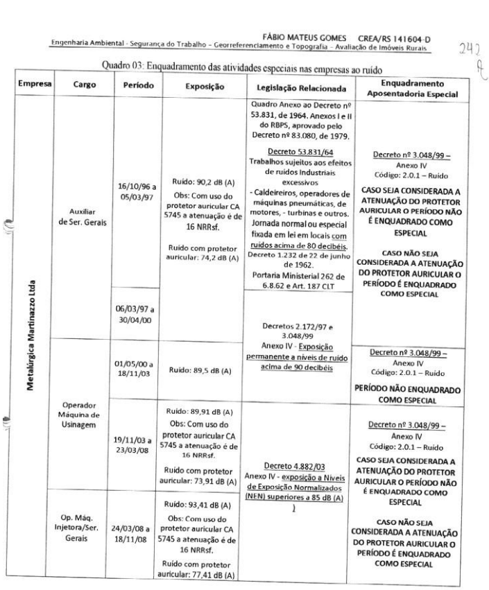 Veja-se que, no exercício da atividade de auxiliar de serviços gerais, em uma metalúrgica (atividade similar), o ruído superava o limite tolerado para o lapso, motivo pelo qual é possível o reconhecimento da especialidade pleiteada. Assim, a sentença deve ser reformada no ponto.