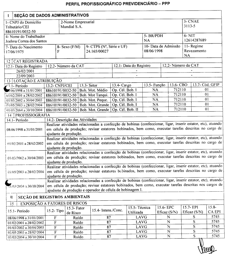 No caso, no PPP, na descrição das atividades do autor, constou o seguinte: Realizar em célula atividades de produção: relacionadas a confecção de bobinas (confeccionar, ligar, inserir estator, etc). atuando em célula de produção; revisar estatores bobinados, bem como, executar tarefas descritas no cargo de ajudante de produção.