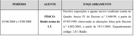 A partir de 19/11/2003 | Anexo IV do Decreto nº 3.048/99, com a alteração introduzida pelo Decreto nº 4.882/2003 | Superior a 85 dB. |