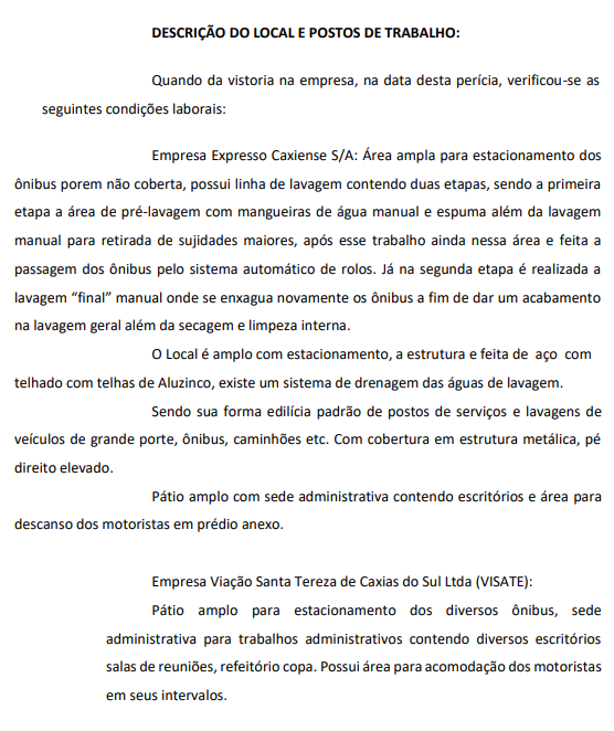 Verifica-se, outrossim, que a perícia foi realizada na Empresa Viação Santa Tereza de Caxias do Sul (Visate), tendo em conta a noticiada recuperação judicial da Empresa Transporte Nossa Senhora das Graças Ltda. ().