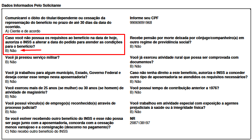 No caso específico dos autos, ao não autorizar o INSS a alterar a data da data do pedido para atender as condições para o benefício, o sistema informatizado do INSS não analisou essa possibilidade. Logo, essa omissão da parte acabou provocando o indeferimento automático do benefício.