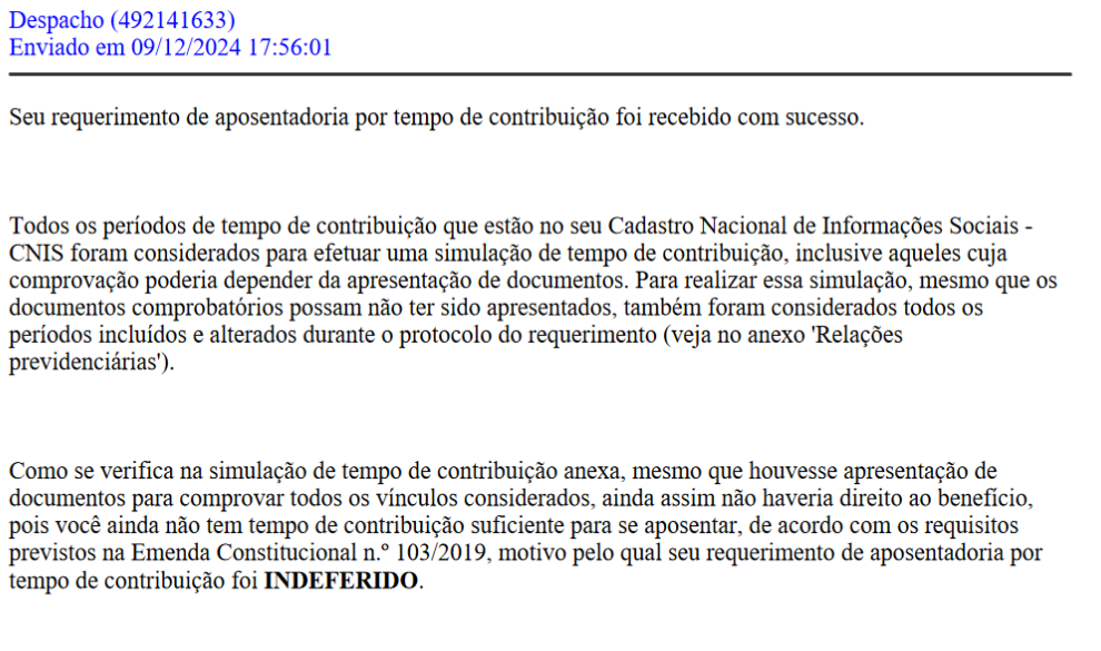 Outrossim, o despacho deixa claro que o requerimento do impetrante sofreu um indeferimento automático baseado em simulação de tempo de contribuição.