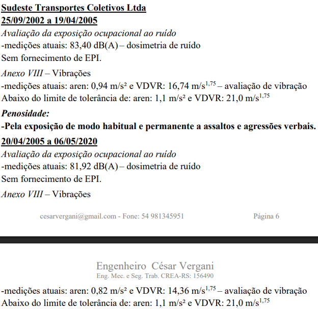 2. Análise dos trajetos. O profissional deverá identificar qual(is) a(s) linha(s) percorrida(s) pelo trabalhador e analisar se existia, nesse transcurso, penosidade em razão de o trajeto incluir localidades consideradas de risco em razão da alta incidência de assaltos ou outras formas de violência, ou ainda em razão de o trajeto incluir áreas de difícil acesso e/ou trânsito em razão de más condições de trafegabilidade, como, por exemplo, a ausência de pavimentação.