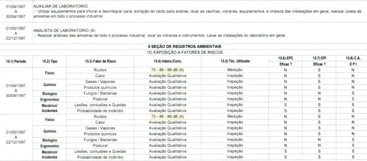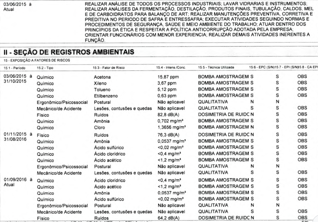 Os PPPs dos períodos em análise foram apresentados no evento 1 (OUT51 a OUT58) e dão conta de que a parte autora exerceu as funções de ajudante de serviços gerais de laboratório, auxiliar de laboratório e analista de laboratório da empresa Usina de Açúcar Santa Terezinha Ltda., com exposição aos seguintes agentes agressivos: