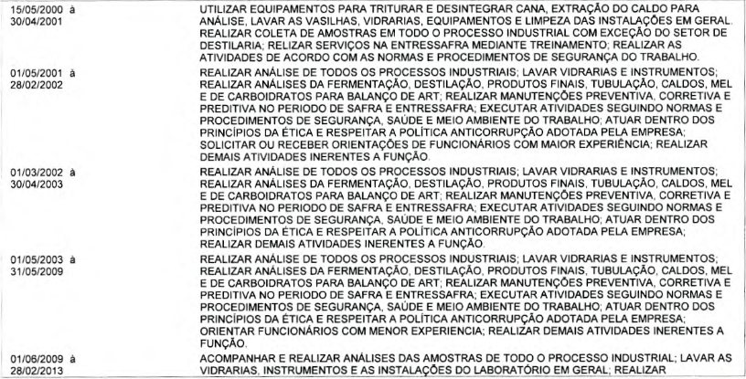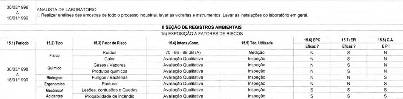 Até 28/02/2013 e a partir de 03/06/2015 as atividades foram as mesmas, em laboratório, razão pela qual a sentença deve ser mantida para os períodos de 15/04/1996 a 26/11/1996, 01/04/1997 a 30/04/1997, 01/05/1997 a 22/12/1997, 30/03/1998 a 18/01/1999, 15/05/2000 a 30/04/2001, 01/05/2001 a 28/02/2002, 01/03/2002 a 30/04/2003, 01/05/2003 a 31/05/2009, 01/06/2009 a 28/02/2013 e 03/06/2015 a 24/10/2017, considerando a exposição habitual a ácido sulfúrico, entre outros agentes químicos de avaliação qualitativa (Anexo 13 da NR-15) e quantitativa (Anexo 11 da NR-15), embora estes tenham se dado abaixo dos limites de tolerância, e a hidrocarbonetos aromáticos, tais como tolueno, etilbenzeno e xileno.