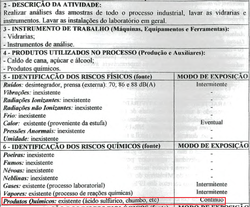 O laudo, por outro lado, informa que os produtos químicos informados no PPP eram o ácido sulfúrico e o chumbo, entre outros, aos quais ficava exposto continuamente. Veja-se: