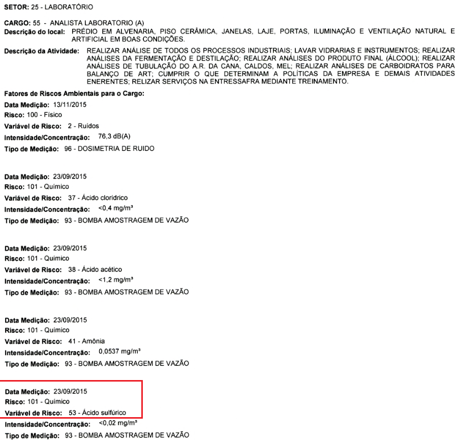 Além disso, afastou-se a eficácia do EPI tanto pela exposição ao ácido sulfúrico como aos hidrocarbonetos aromáticos tolueno, etilbenzeno e xileno.
