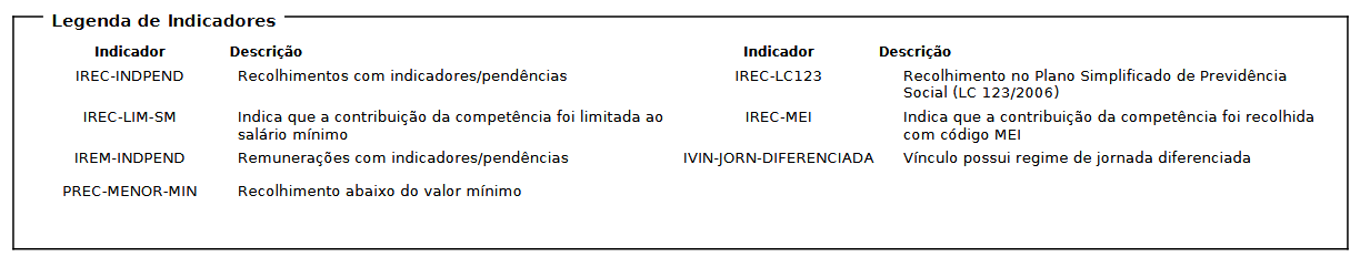 Como se lê, constam os indicadores IREC-LC123, IREC-MEI, IREC-INDPEND, IREC-LIM-SM. Essas anotações são assim interpretadas: