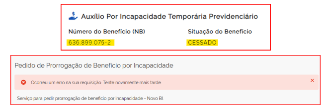 3. O pedido de prorrogação de benefício por incapacidade temporária é um direito do segurado e a impossibilidade de o segurado exercer esse direito pode ser objeto de mandado de segurança. Também a suspensão ou cancelamento não deve ocorrer antes de ser oportunizado o pedido de prorrogação.