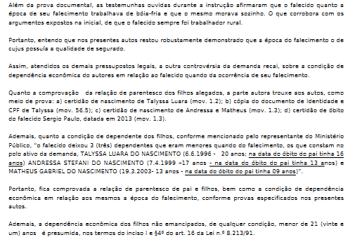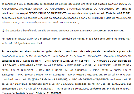 - apelação da parte autora: provida em parte para determinar o termo inicial do benefício (cota-parte respectiva) para os autores Andressa e Matheus a data do falecimento do instituidor;