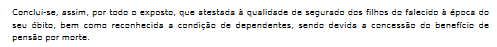 3. Comprovado o preenchimento de todos os requisitos legais, a parte autora faz jus ao benefício de pensão por morte.