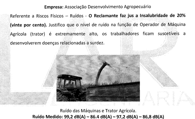Está demonstrada a especialidade do período de 19/11/2003 a 06/06/2008, trabalhado na empresa Associação Desenvolvimento Agropecuário de Paraí, na função de Operador de Máquinas Agrícolas, em razão da exposição a ruído de 99 decibéis, conforme indicado no laudo pericial juntado no evento 3, MANIF_MPF6, p. 46.