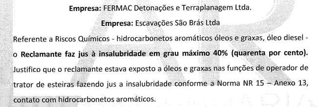 Configurou-se a presença de agentes químicos (óleos e graxas, óleo diesel) no ambiente laboral do autor.