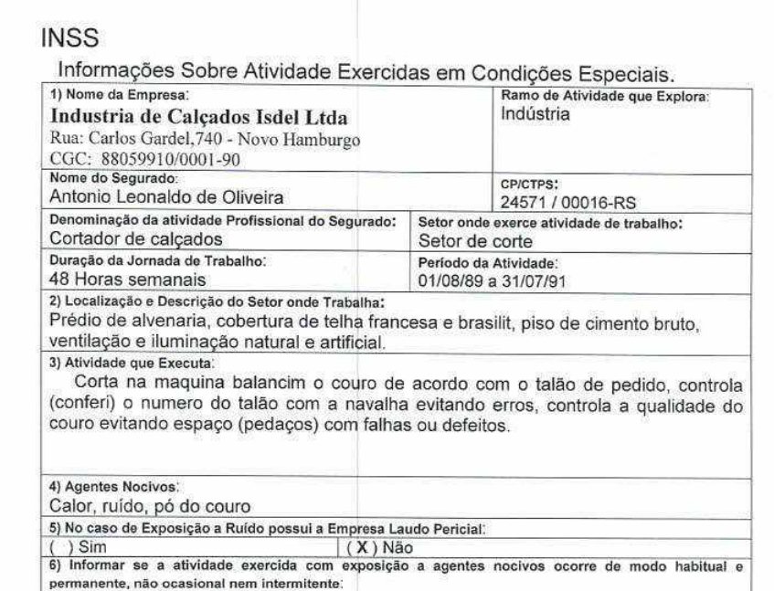 Nesse contexto, está demonstrada a especialidade do período de 01/08/1989 a 31/07/1991, trabalhado na empresa Indústria de Calçados Isdel Ltda, na função de cortador de calçados, em razão da exposição a ruído, conforme indicado no laudo similar do evento 1, LAUDO14.