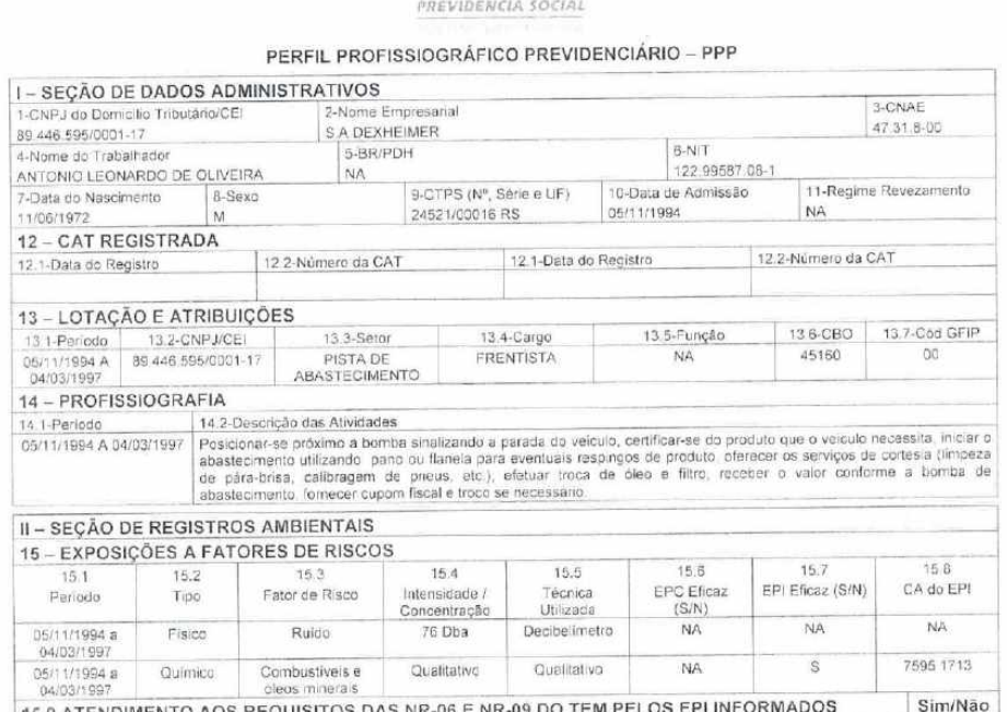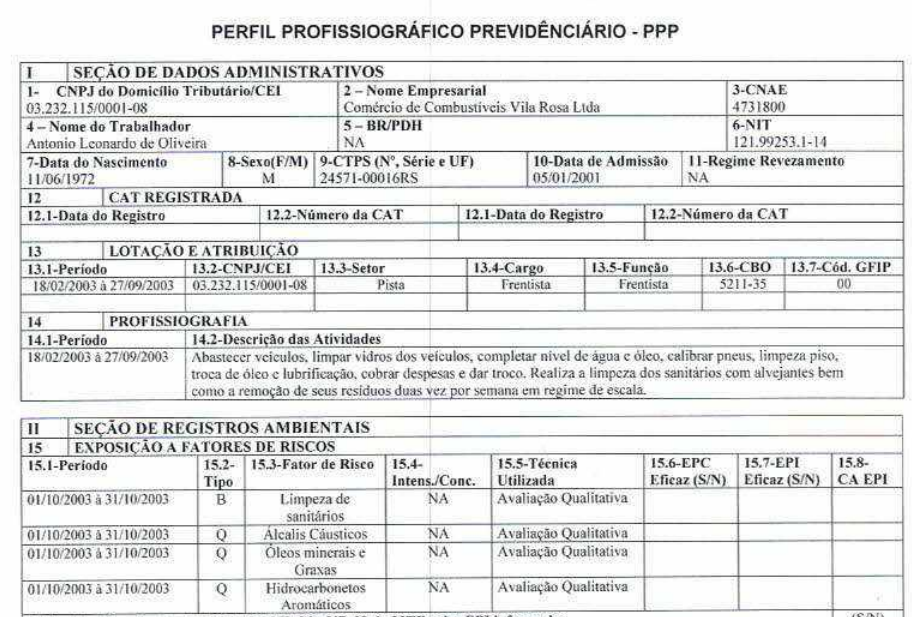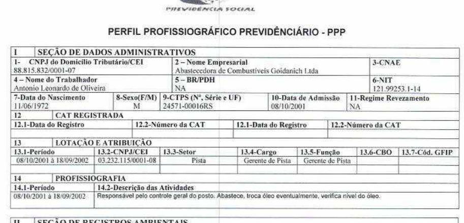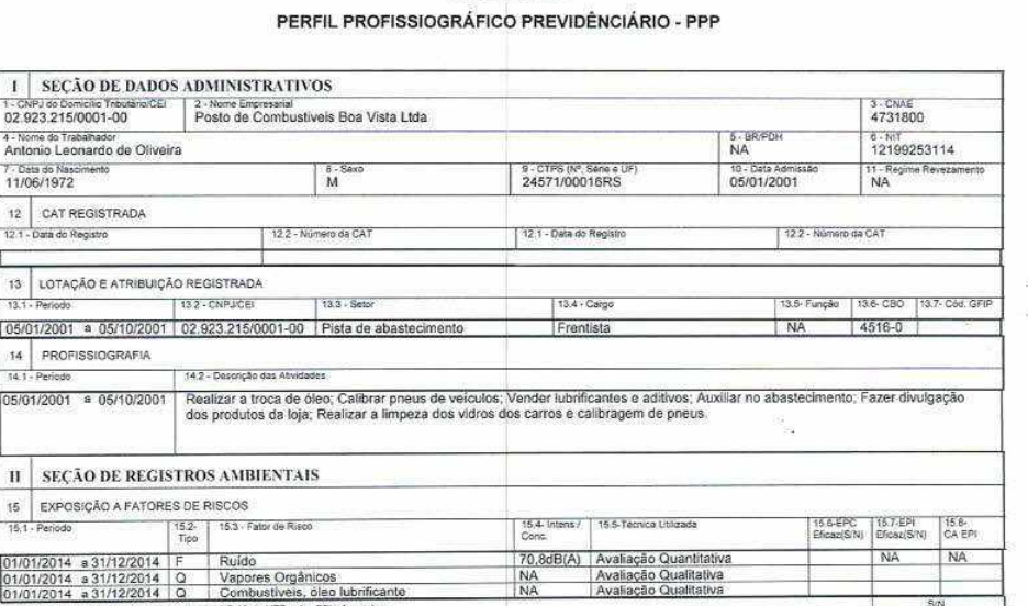 A atividade descrita no PPP indica que o autor trabalhava inclusive no abastecimento de veículos realizando atendimento de clientes, exercendo funções de frentista.