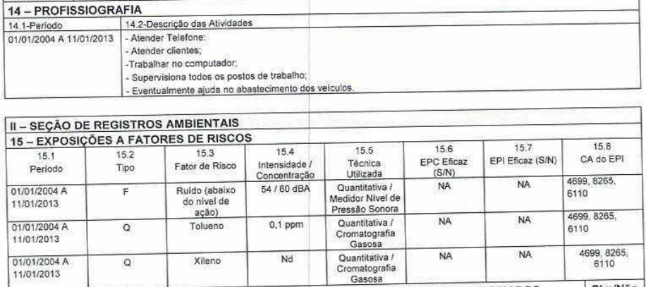 Configurou-se a presença de agentes químicos (hidrocarbonetos, óleos e graxas e benzeno) no ambiente laboral do autor.