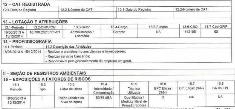 Para comprovação da especialidade, foi apresentado perfil profissiográfico previdenciário, com os seguintes registros: