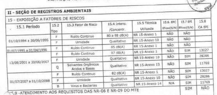 Provas: PPP, evento 2, OUT1, p. 71; Perícia técnica, evento 2, SENT2, p. 33