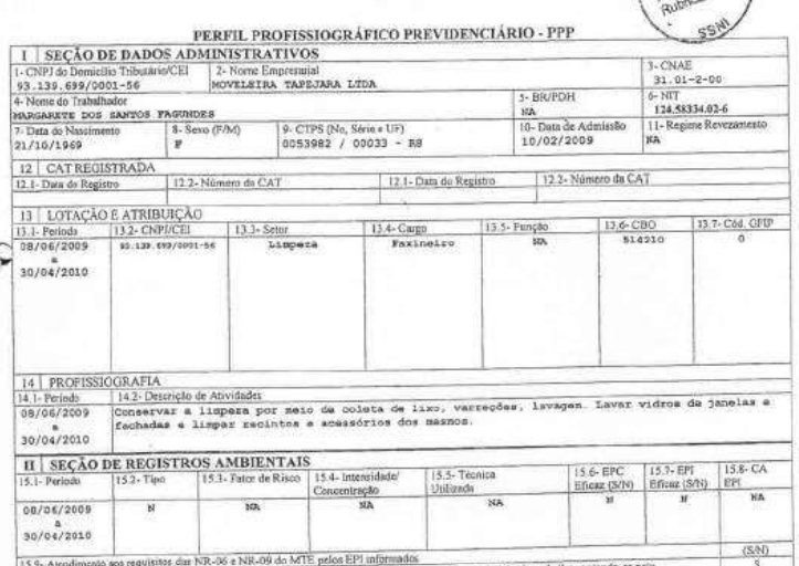Para comprovação da especialidade foi apresentado perfil profissiográfico previdenciário com os seguintes registros: