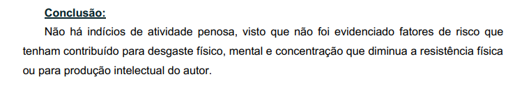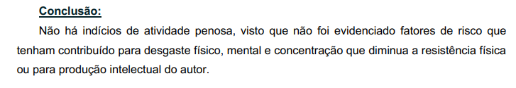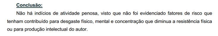 Todas essas condições consideradas pelo perito conduziram à conclusão de que não havia penosidade.