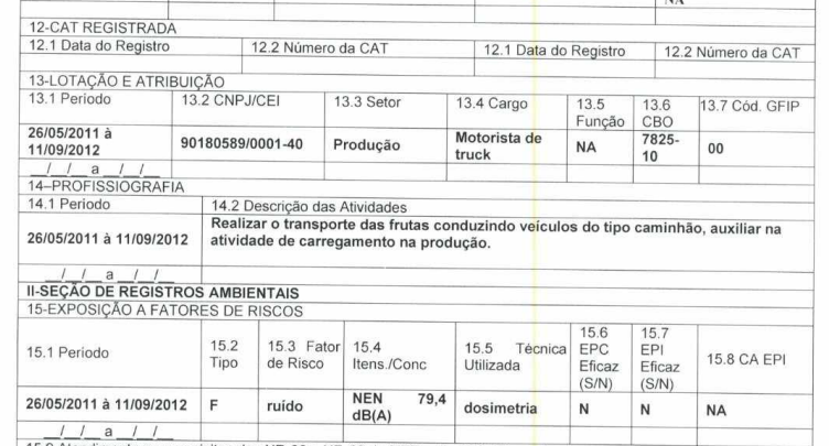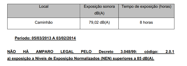 Note-se a exposição a ruído anotada no PPP era inferior ao limite de tolerância. Não foram elencados outros fatores de risco.