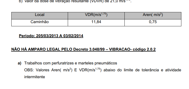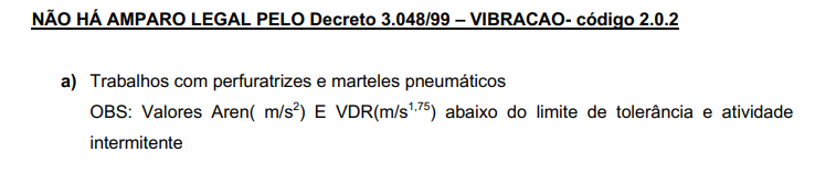 Período | Agente nocivo com | Agente nocivo com | Nível | Limite | EPI | Reconhecido em sentença |