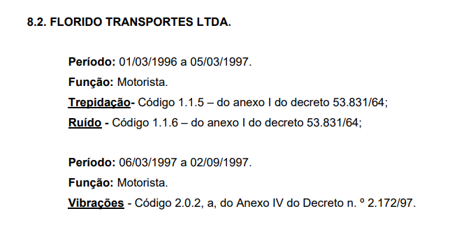 Nesse contexto, está demonstrada a especialidade do período de 06/03/1997 a 02/09/1997, trabalhado na empresa Florido Transportes Ltda, na função de motorista de ônibus, em razão da exposição a penosidade e vibrações, conforme indicado na perícia judicial, cujo laudo foi apresentado no evento 91, LAUDOPERIC1, p. 15