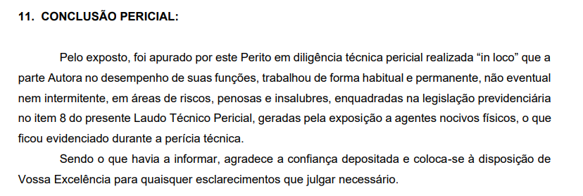 Para comprovação da especialidade, foi produzida prova pericial, cujo laudo atestou as seguintes condições de trabalho: