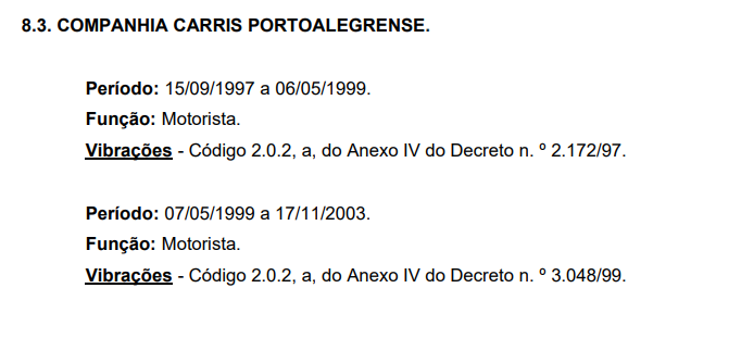 4. É devido o reconhecimento da especialidade em razão da exposição ao agente nocivo vibrações demonstrada por meio de prova técnica, com base nos Decretos 2.172/97 (item 2.0.2) e 3.048/99 (item 2.0.2).