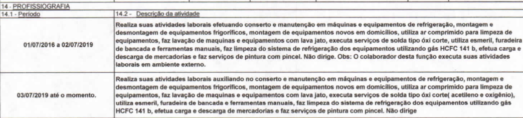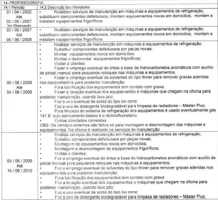 Nos períodos de 01/04/2002 a 30/06/2016 e de 01/07/2016 a 30/05/2018, o autor exerceu atividades relativas aos cargos de mecânico de refrigeração e de mecânico aprendiz de refrigeração